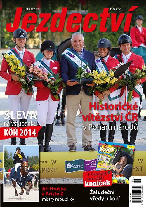 Naše fotografie na titulní straně časopisu Jezdectví (spolu z reportáží z mezinárodních jezdeckých závodů CSIO*** Budapest), 08/2014